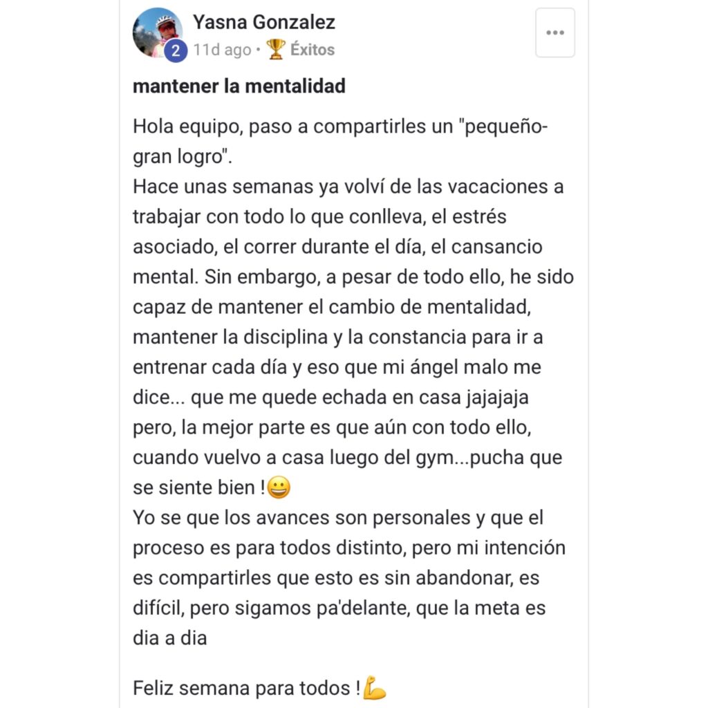 «Antes de entrar al Equipo me sentÃa estancado, tenÃa los hábitos pero no sabÃa como llevar una correcta planificación. Dentro de este proceso he cambiado fÃsicamente, mentalmente y me siento mejor que nunca, hasta mis amigos me dicen que estoy marcado y siento que he expandido mi conciencia.«