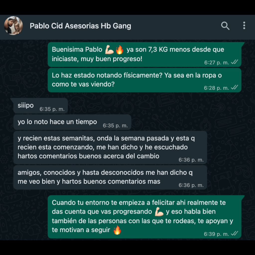 «La pensaba mucho antes de entrar al Equipo HB, incluso consideré la bariátrica… pero me decidí y luego de 2 meses y esfuerzo logré bajar 10 kg. No lo pienses mucho, solo toma la decisión y verás los cambios si estás comprometido.«